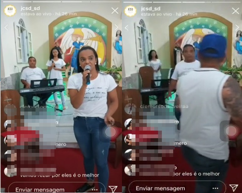 Num determinado momento da transmissão uma participante do grupo que está com o microfone mostra-se assustada com algo, já que não houve uma previa de que nada estivesse acontecendo, ela sai de cena e diz que volta em dois minutinhos, em seguida o tecladista e outra jovem se retiram quando um homem de camiseta aparece de costas no vídeo e segundos depois ouve-se um barulho que mais parecia de tiros, mas foi o momento que o vândalo arremessou a imagem no chão.